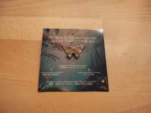 コロンビア館に立ち寄り、蝶の公式ピンバッジ(日本バージョン)を購入しました。