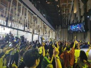 フランス館4階のラウンジから木製リングを見たら、人・人・人😳やったので、夢洲駅が混雑する前=18時15分に会場を出ました。
