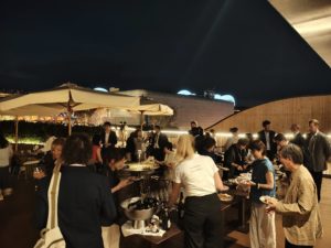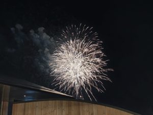 勉強会終了後、3階テラス席貸切でワイン+軽食+会話+花火を楽しみました。