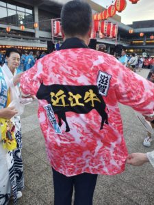 会場内は爆笑でした。掴みはOK!これで笑いを取れる滋賀県はズルいです。また、知事の法被は、近江牛😳